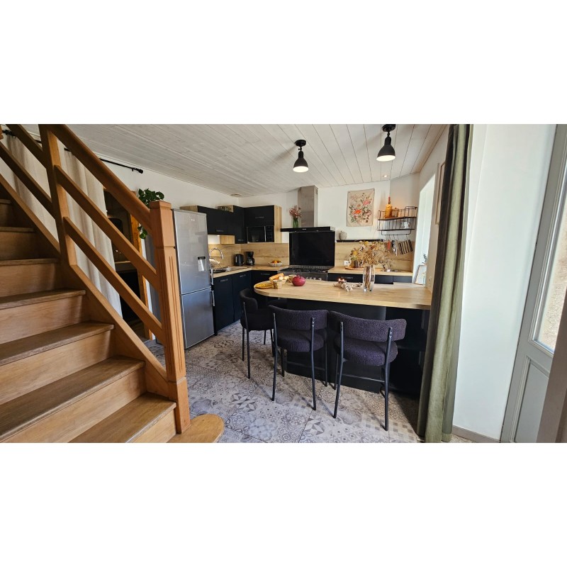 Dès l’entrée, vous découvrez une cuisine entièrement équipée, conçue comme un véritable espace de vie :