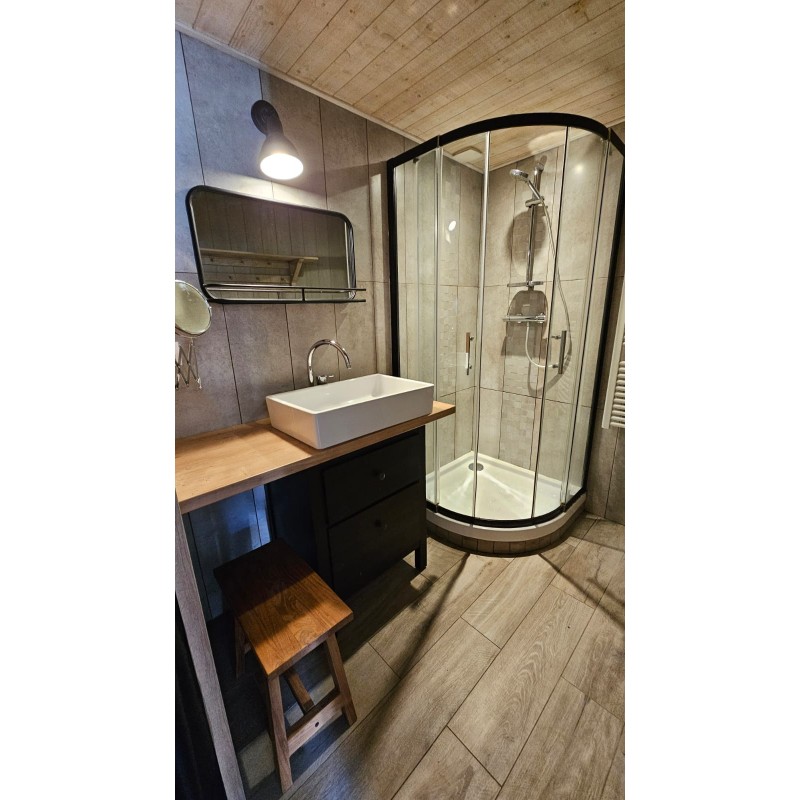 ⚠️ Important : la chambre est directement accessible en haut de l’escalier, sans porte, avec garde-corps.